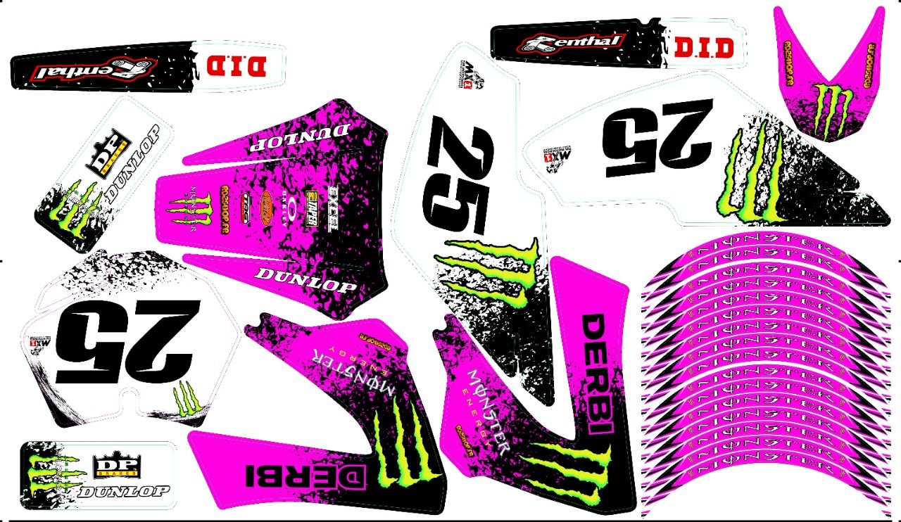 Kit Déco autocollant complet Semi-perso pour 50 à boites (derbi , sherco , yamaha , mbk , beta , gilera , rieju) . Autocollants épais haute qualité .