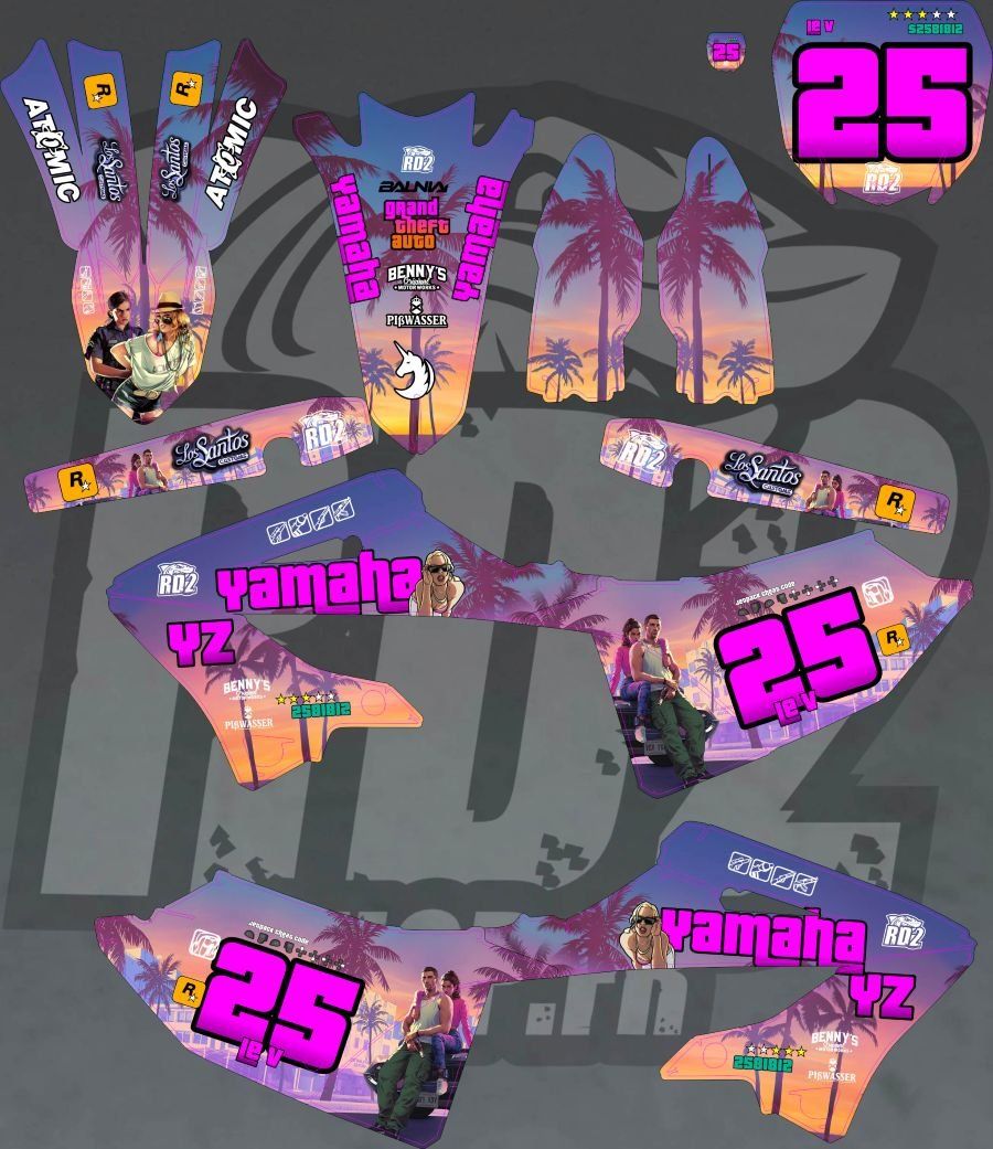 Kit Déco autocollant complet Semi-perso , GTA . Cet article est compatible pour YAMAHA : YZ 125 et 250