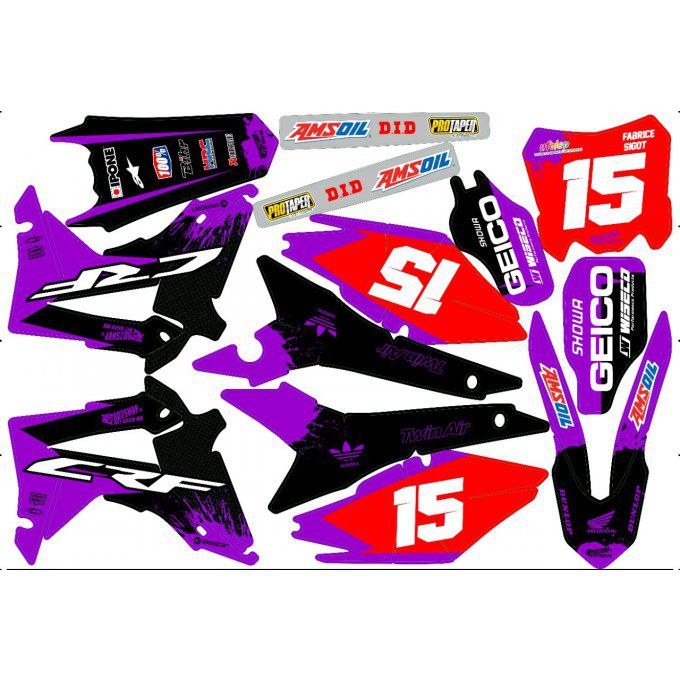Kit Déco autocollant complet Semi-perso pour motocross , supermotard . Cet article est compatible pour Honda :CRF 250 : Année 2014 à 2024 /