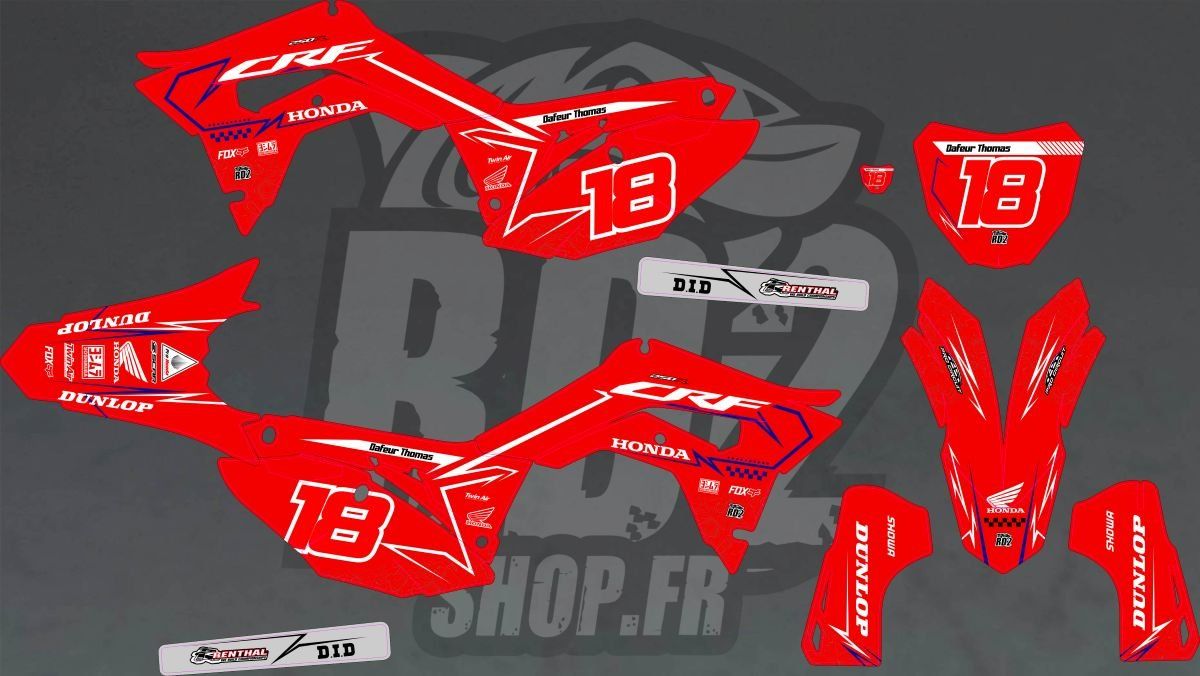 Kit Déco autocollant complet Semi-perso RED Style pour motocross , supermotard . Cet article est compatible pour Honda :CRF 250 : Année 2014 à 2026 /