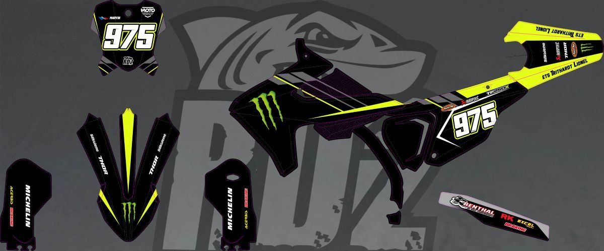 Kit déco Monster Semi-Perso TRIUMPH 250 - 450 - TF-X 2024 - 2025 - 2026 . Autocollants épais haute qualité .