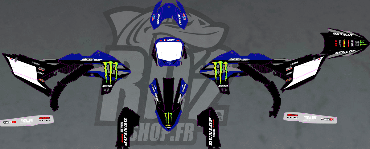 Kit Déco autocollant complet Semi-perso monster usa , motocross , supermotard . Cet article est compatible pour Yamaha : YZF 250 / YZF 450 Année : 2010 à 2026 .